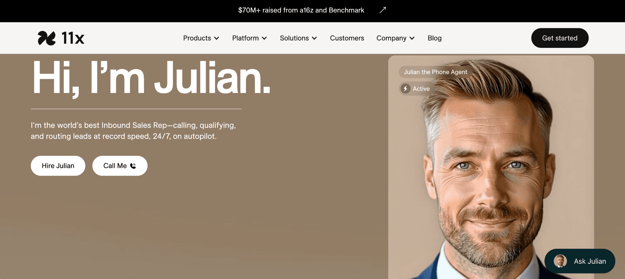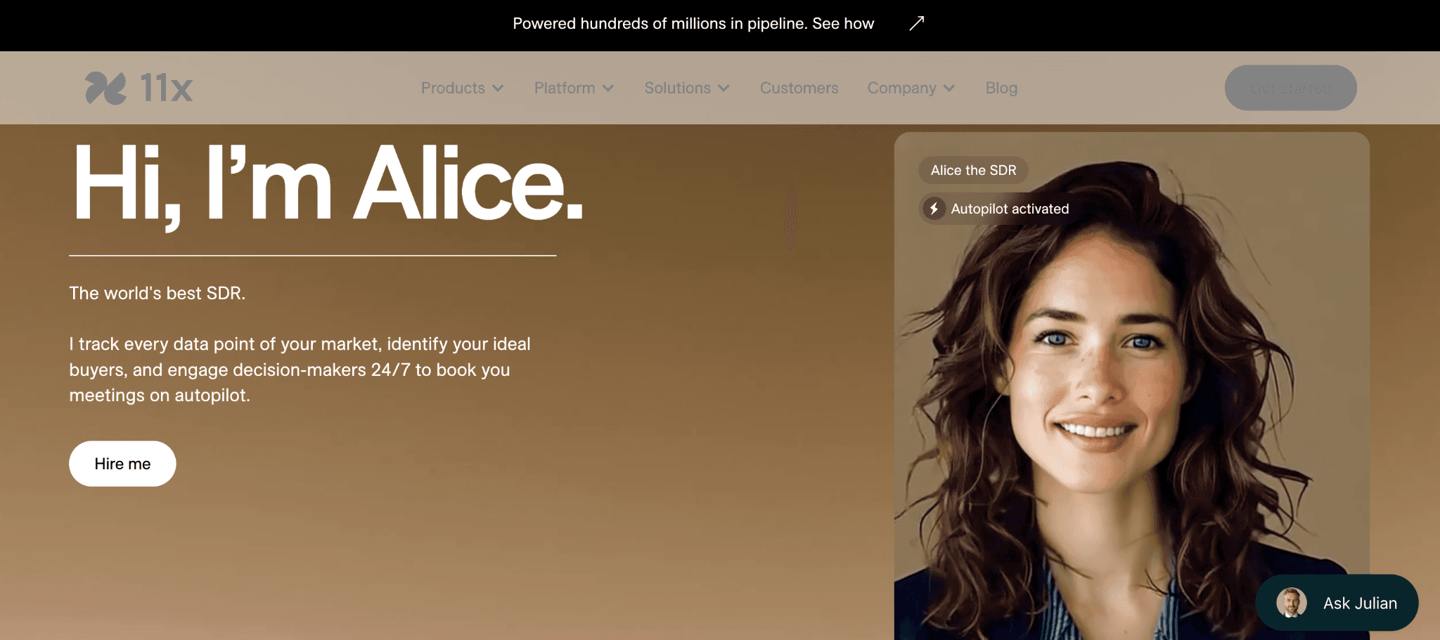 The platform focuses on two primary products: Alice, the outbound SDR, and Julian, the AI phone agent designed for customer interactions.