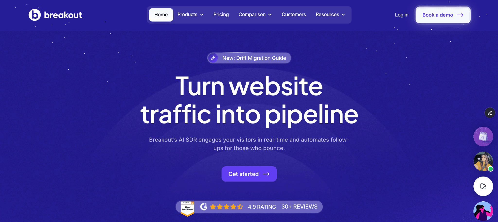 Breakout provides a faster, more flexible, and outcome-oriented alternative that turns existing traffic into a predictable stream of meetings without the enterprise price tag.
