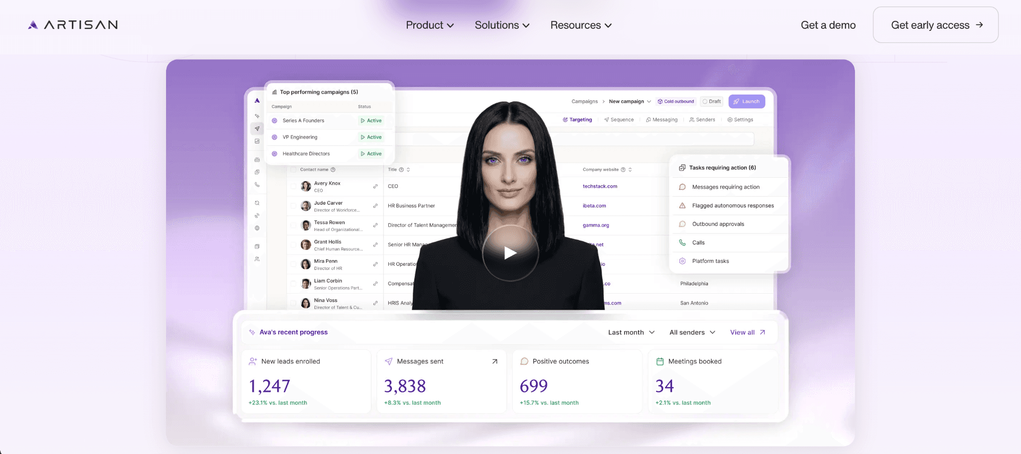 Artisan provides a specific set of capabilities to help your sales team scale their cold outreach efforts: