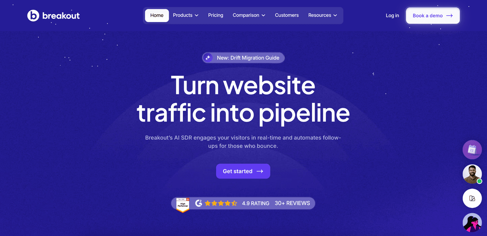 Breakout turns your website into an AI SDR that qualifies and books meetings instantly. It deanonymizes visitors in real time, then engages them with AI-led conversations.
