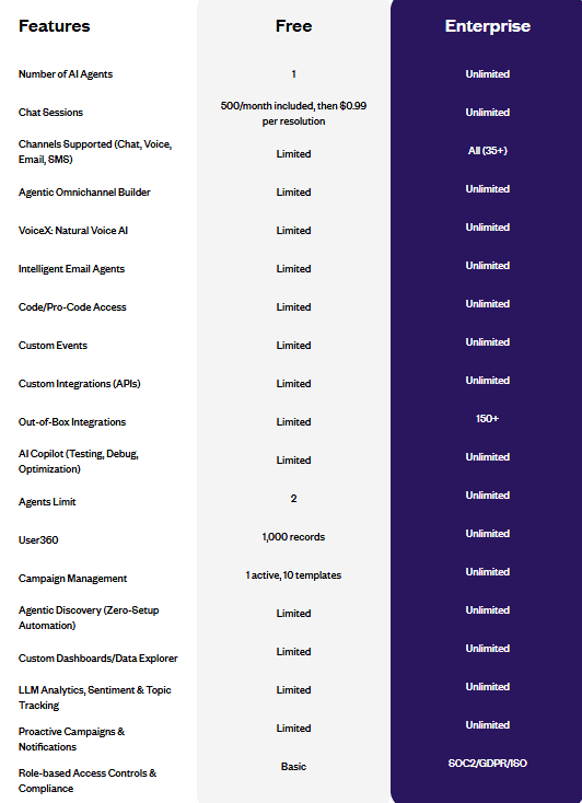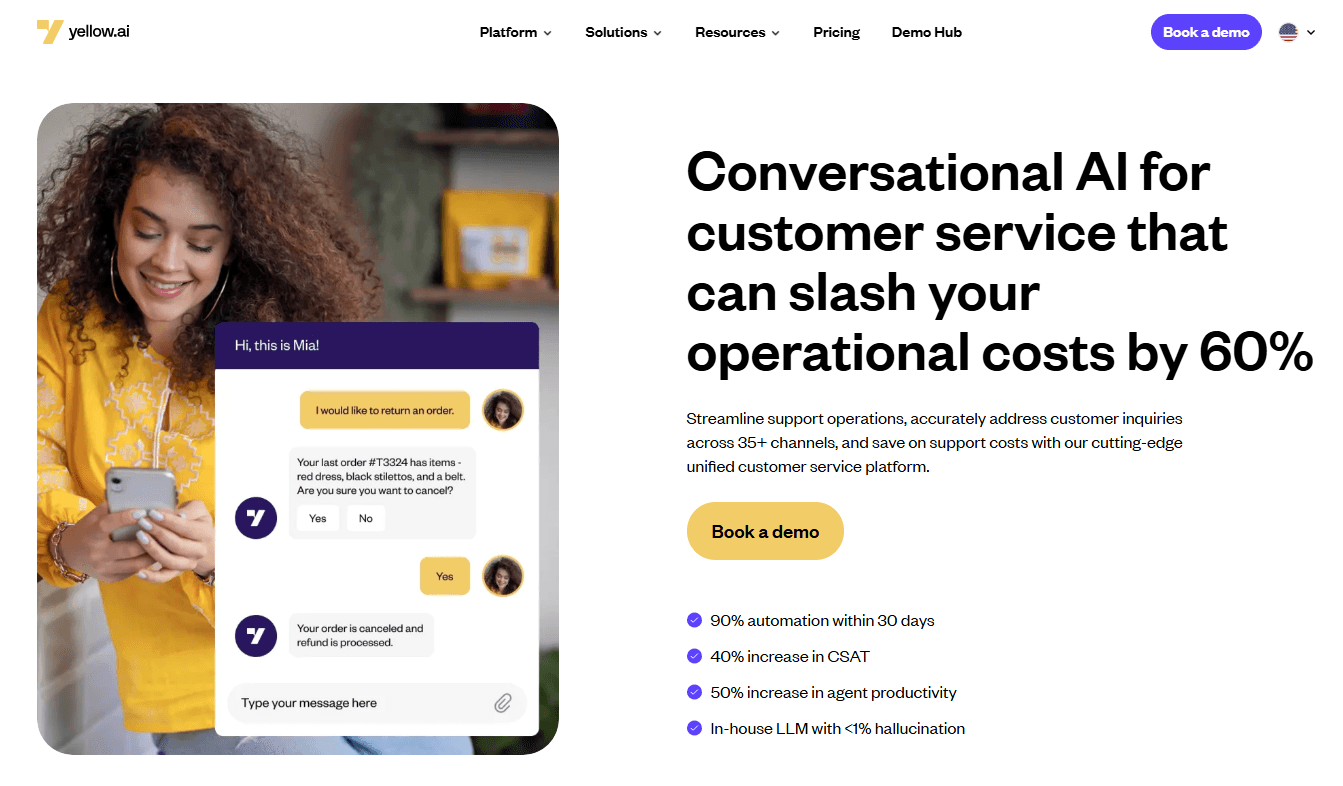 Yellow.ai targets large enterprises with complex conversational needs across chat, voice, and email.