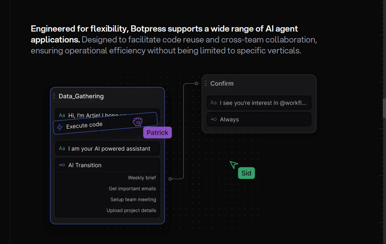 Botpress suits companies with in-house developers building custom conversational workflows. It is not ideal for GTM teams seeking fast deployment or revenue execution.