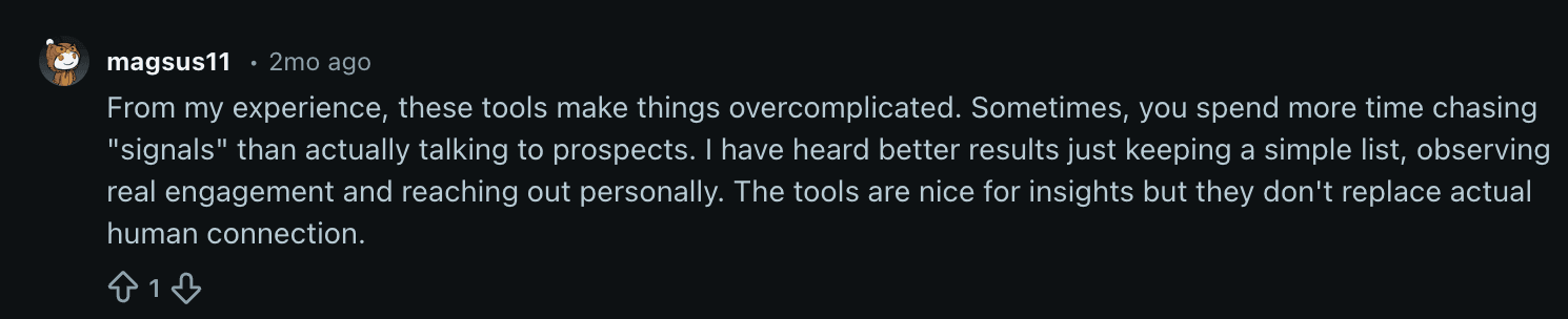 It works well for identifying opportunities, but it does not convert those signals into meetings without manual execution.