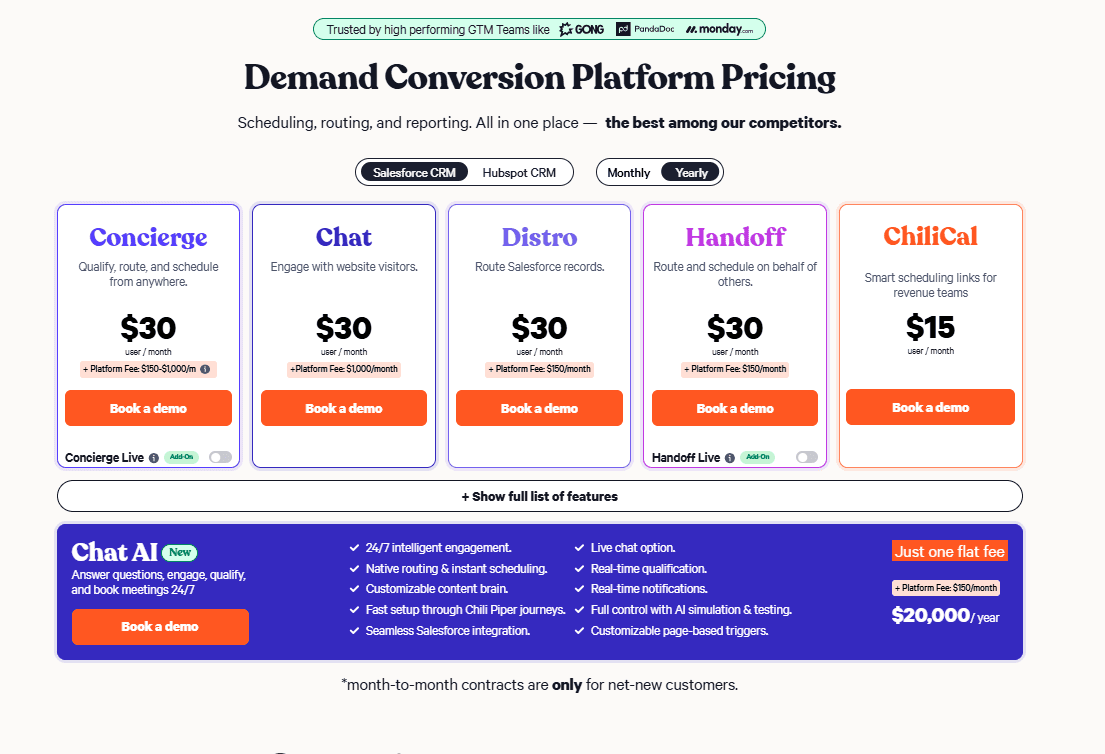 In 2026, Chili Piper follows a seat-based + platform fee model.