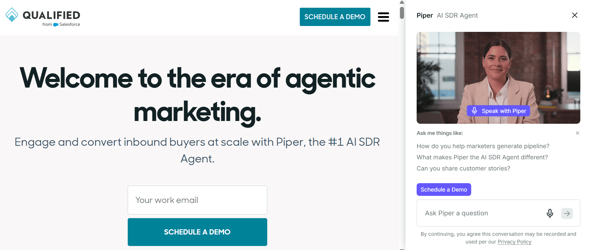 What it is: A pipeline generation platform built natively on Salesforce. Its AI SDR agent, Piper, qualifies inbound website visitors, automates responses, and routes conversations to the right sales rep. Designed for enterprise teams with long sales cycles and complex buying committees.