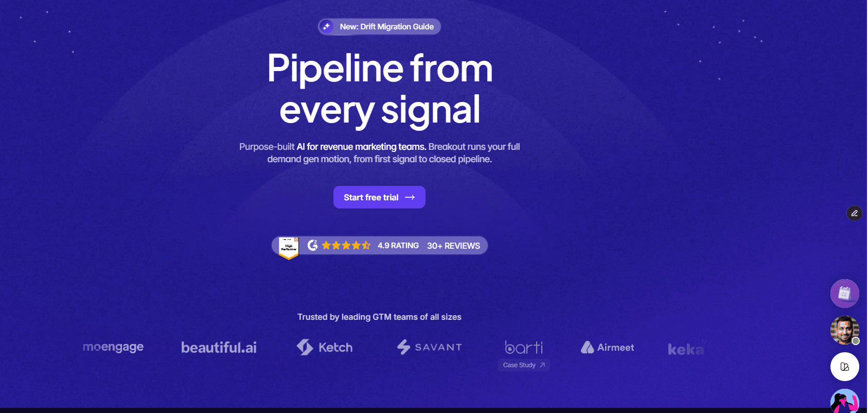 Breakout engages every high-intent visitor on your site — qualifies them, answers their questions, and books the meeting. See it live at getbreakout.ai.