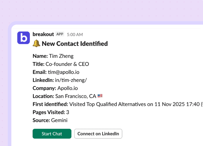 Breakout’s AI SDRs improve routing continuously by learning from past outcomes and live behavior. That reduces misalignment without constant rule maintenance.