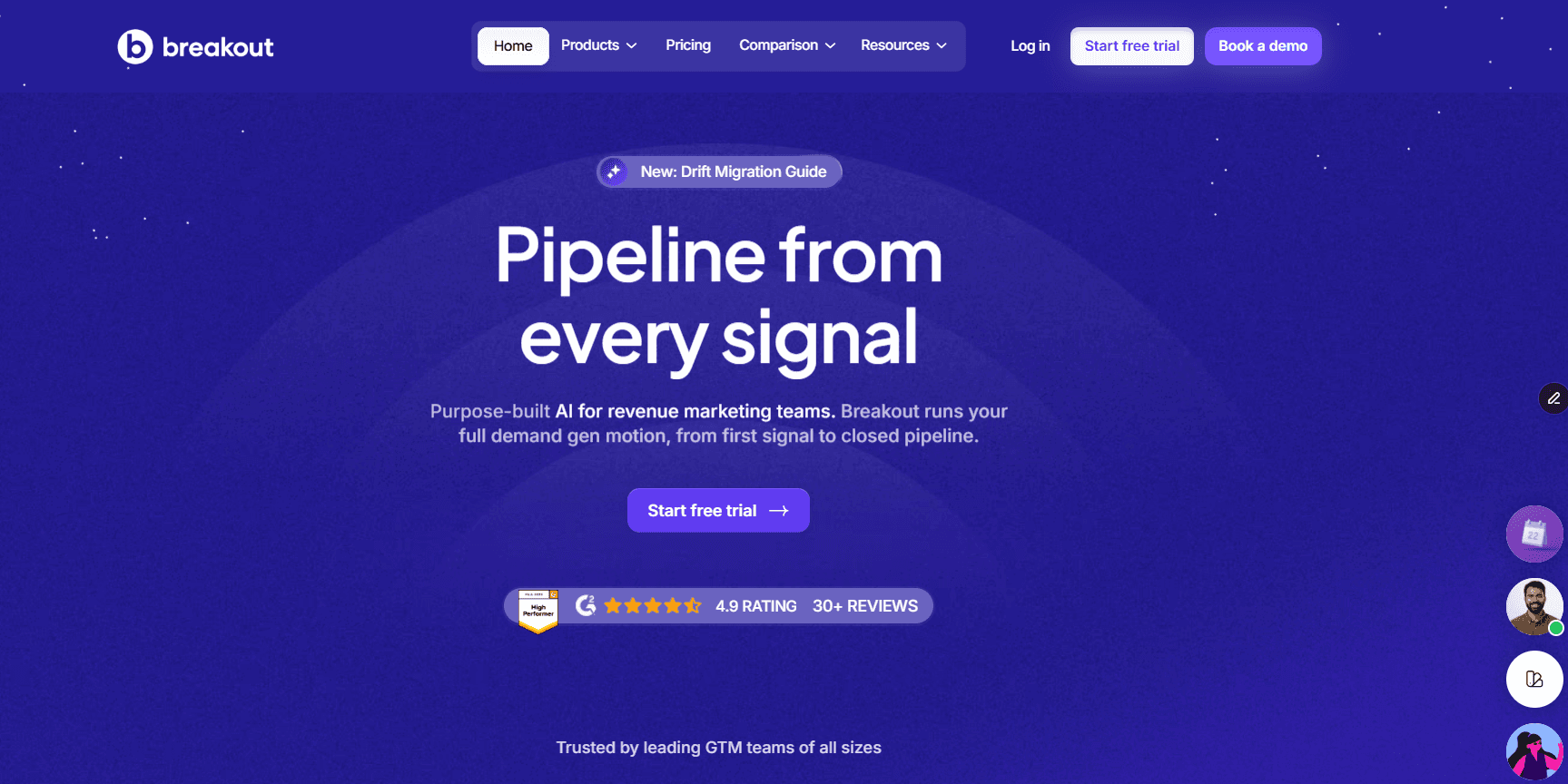 Platforms like Breakout focus on identifying visitors, starting conversations instantly, and qualifying intent, helping teams convert more of their existing traffic into pipeline.