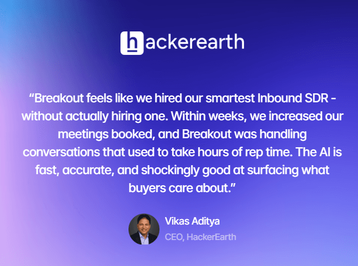 With Breakout, HackerEarth started engaging visitors in real time instead of waiting for form fills.