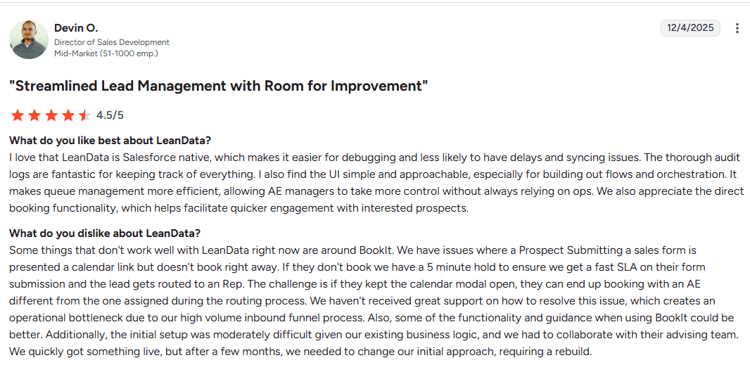 It works well for teams with strong admin or RevOps support who are comfortable building and maintaining custom workflows. For simpler routing needs, it can replace LeanData effectively. But it comes with tradeoffs.