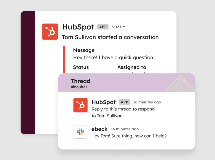 Integration with Slack and HubSpot tools