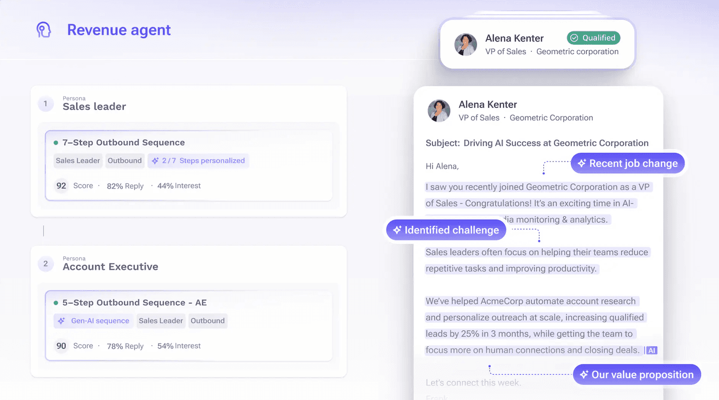 If your bottleneck is follow-up, you need automation that can take action. Breakout behaves more like an AI SDR. It takes the signal and drives the outreach without waiting for a rep to write the first touch.