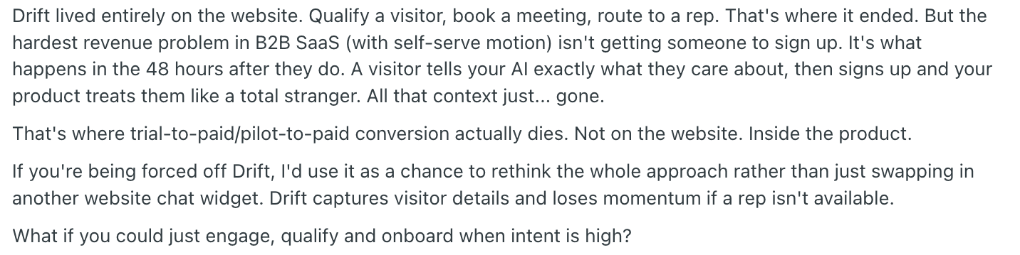 That forces a reset for teams evaluating Drift alternatives and planning a Drift replacement.