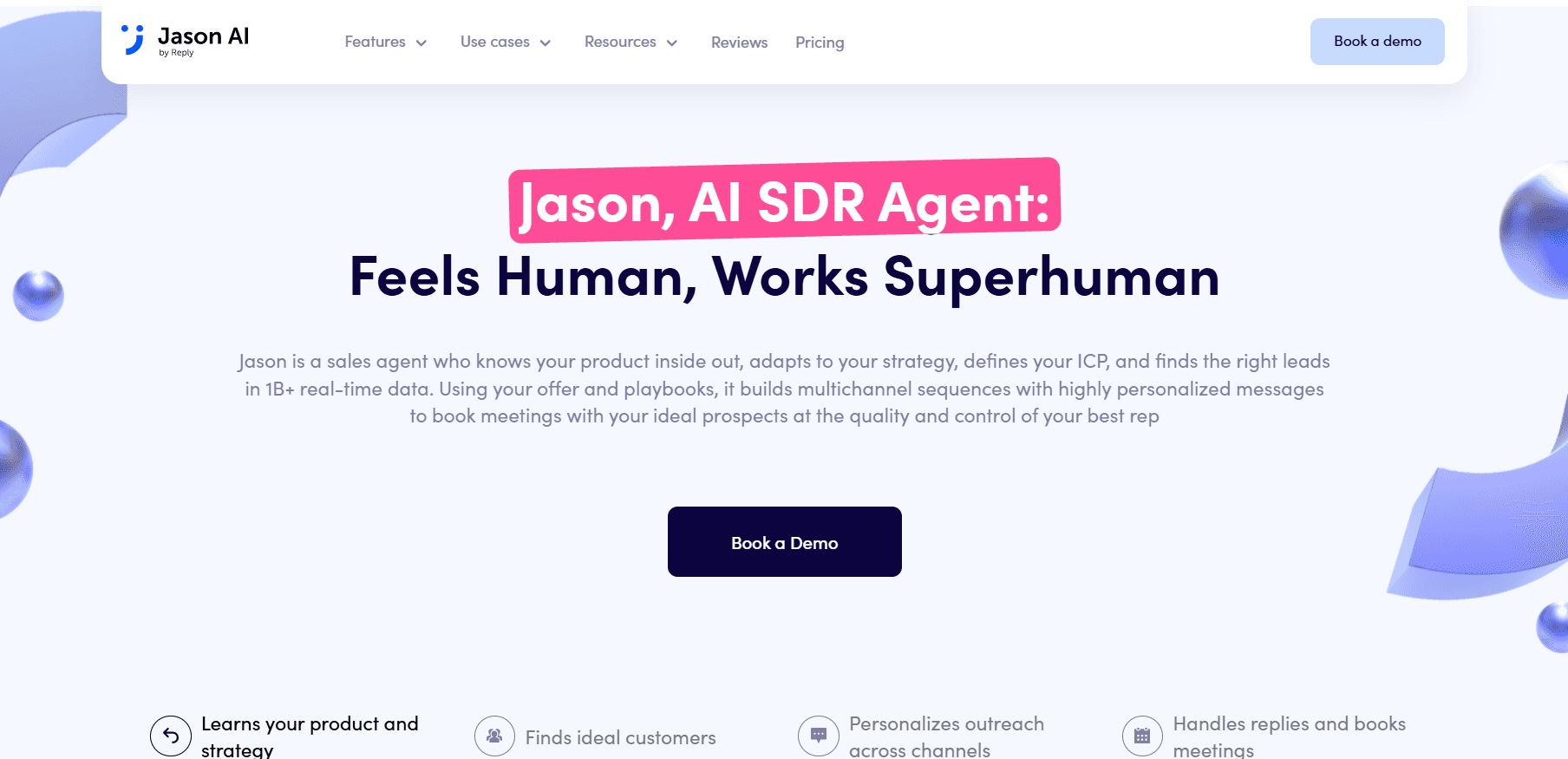 Jason AI | High autonomy in outbound messaging and response handling. | Uses prospect databases and enrichment integrations to identify accounts. | Runs email conversations, replies to prospects, and schedules meetings automatically. | Subscription pricing for teams improving SDR productivity. |