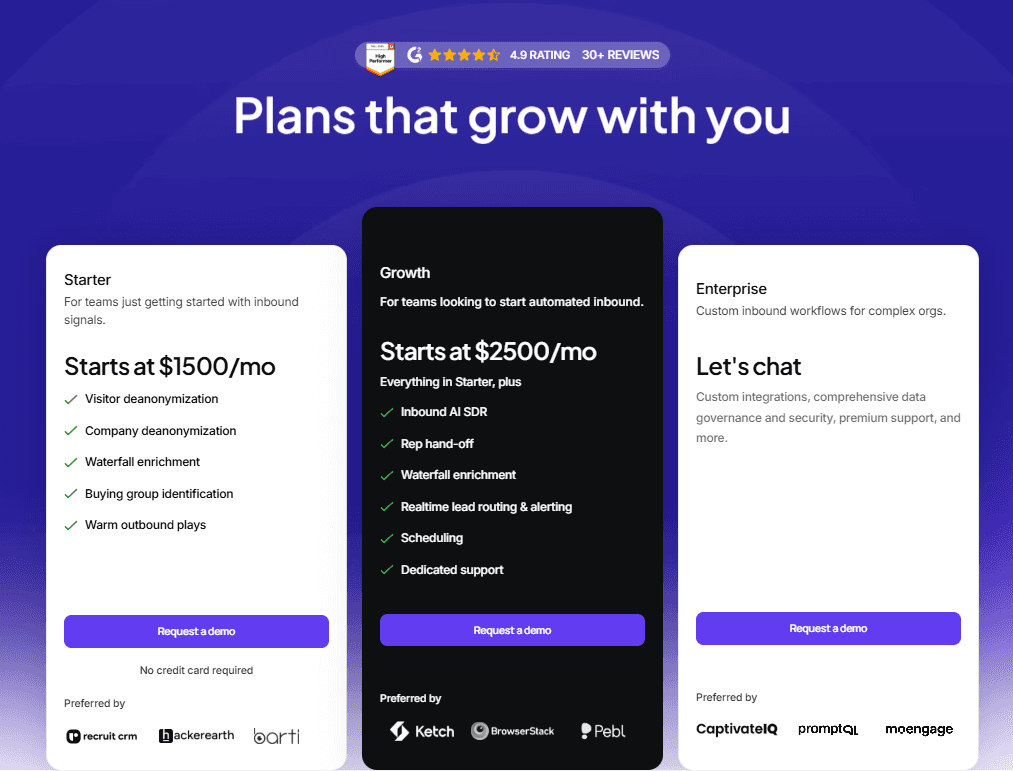 If your goal is to convert website traffic into pipeline, Breakout is a strong option. It combines real-time conversations with inbound-led outbound workflows.