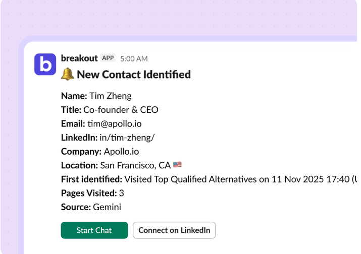 Very few tools do this natively. Breakout combines AI chat, visitor identification, qualification, and CRM execution in one platform.
