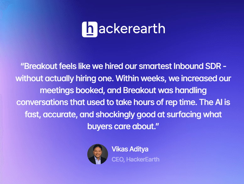 HackerEarth used Breakout to intercept high-intent traffic at critical moments in the buyer journey.