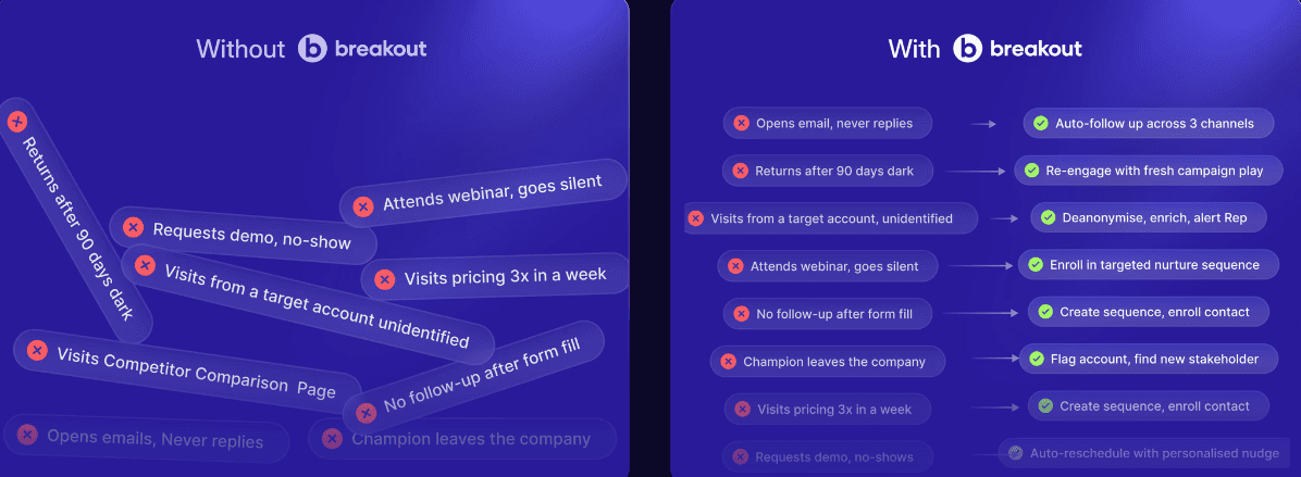 Breakout becomes more relevant when your challenge is converting interest into meetings without adding more manual work.