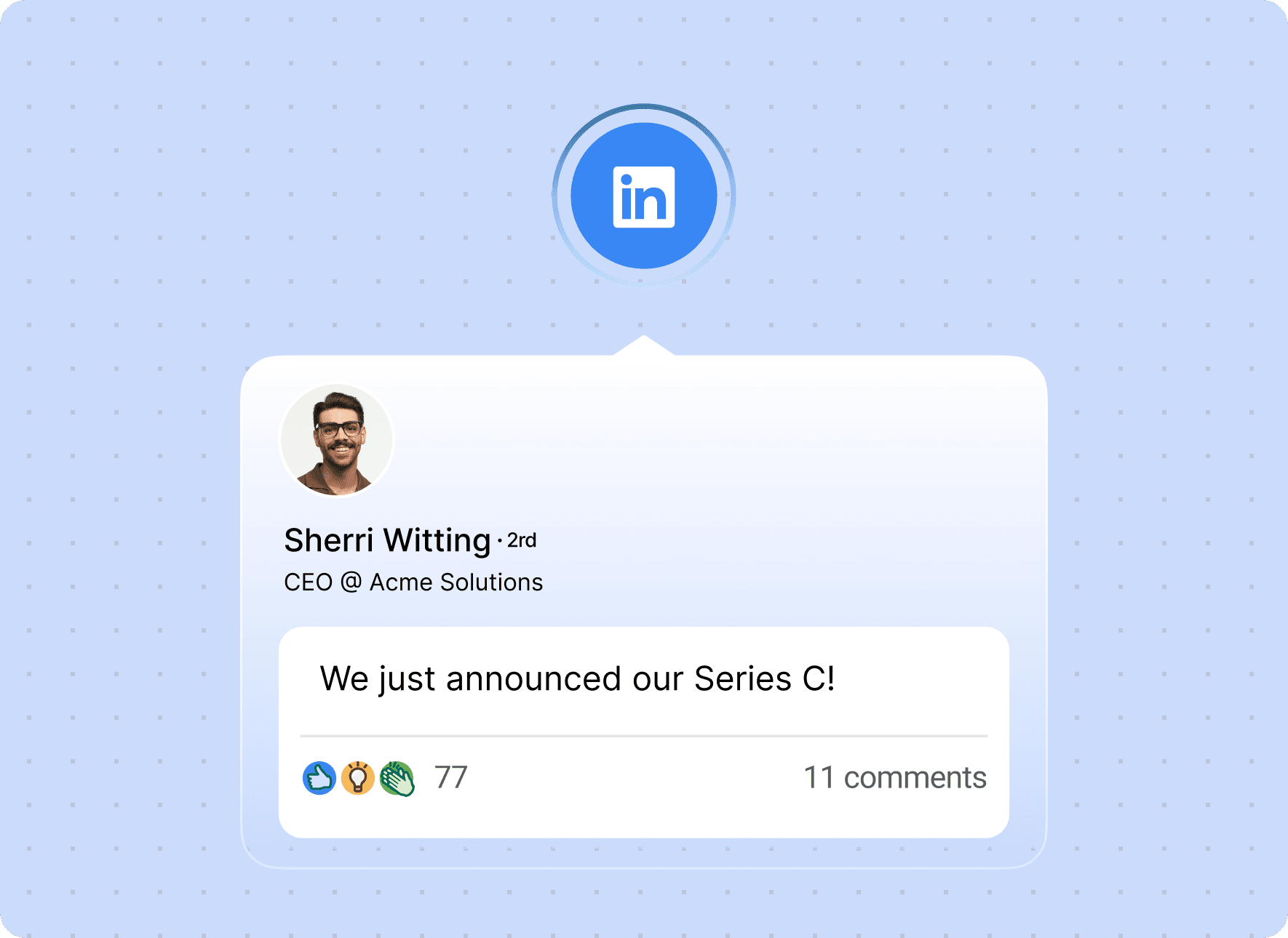 Display your company or founder content from LinkedIn and X to expand social reach and credibility.
